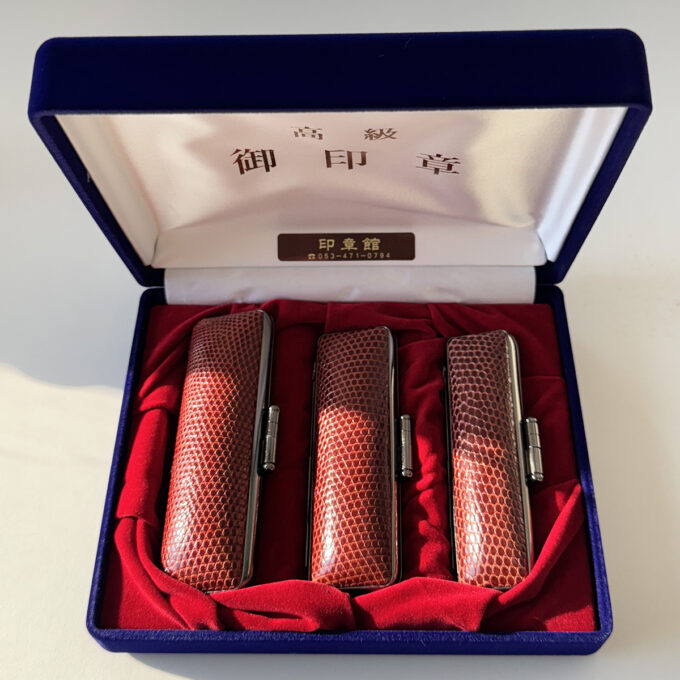 サイズは、実印が18ミリ丸、銀行印が15ミリ丸、認印が12ミリ丸です。