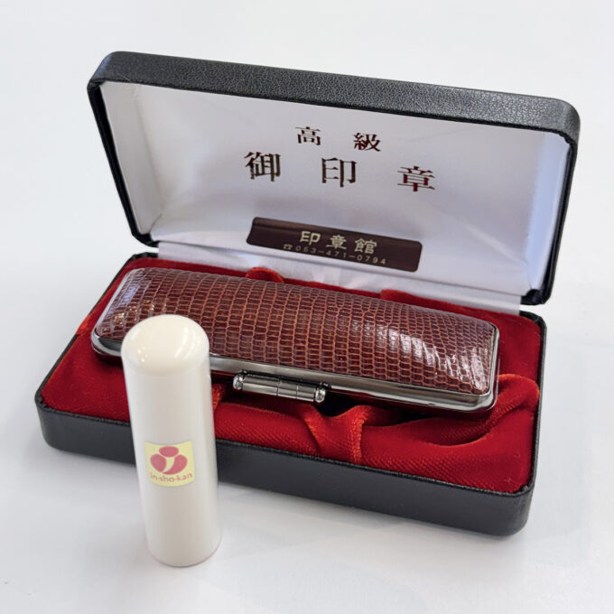印章ケースは、本トカゲ(茶色)のケースが付いています。